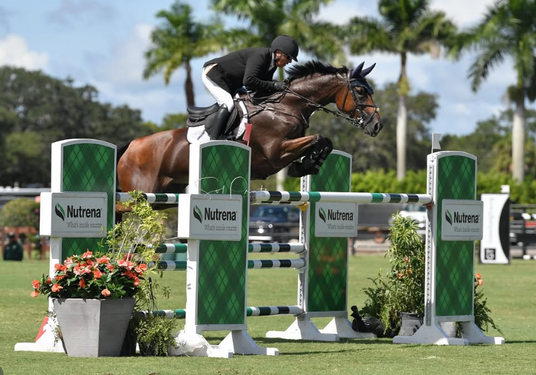 ”Katherine Coleman’s jumper, Dartfield, an 8 year old Dutch Warmblood is on Super Joint Solution and U Shield. They were 2nd in High Adult Jumper Classic in Wellington this past January. He has also been started in some bigger classes and has done very well. This shot is from 1.20m jumpers at the Spring Gathering Show in Houston, TX. There were always over 20 entries in those classes and he either won or was top 3 all three weeks.”